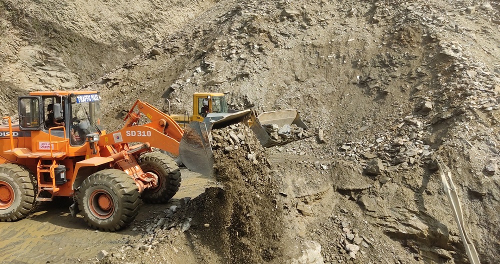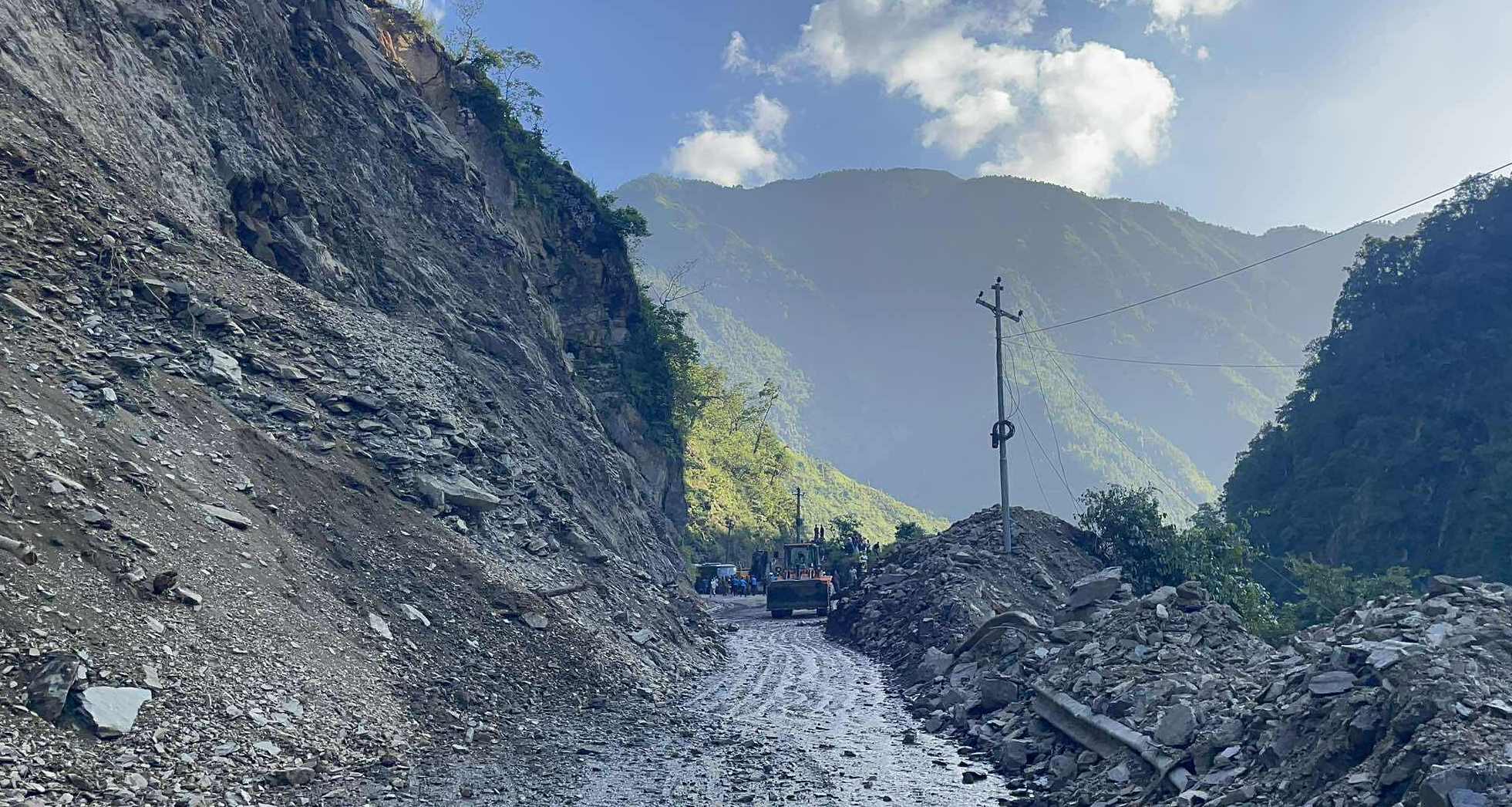 CHITWAN : The road that was blocked due to a landslide at Badaremode near Benighat in Dhading along the Muglin-Naubise...