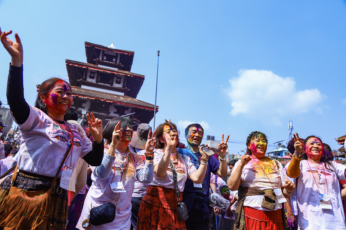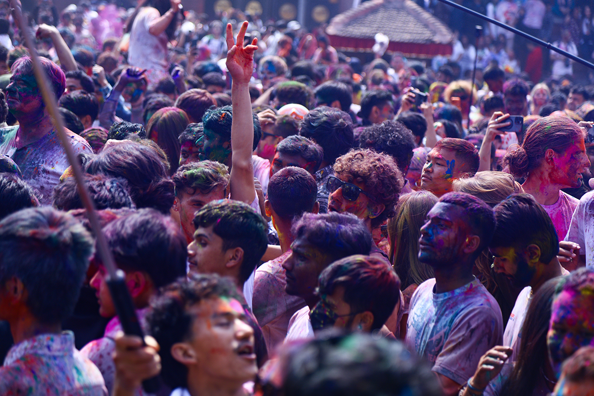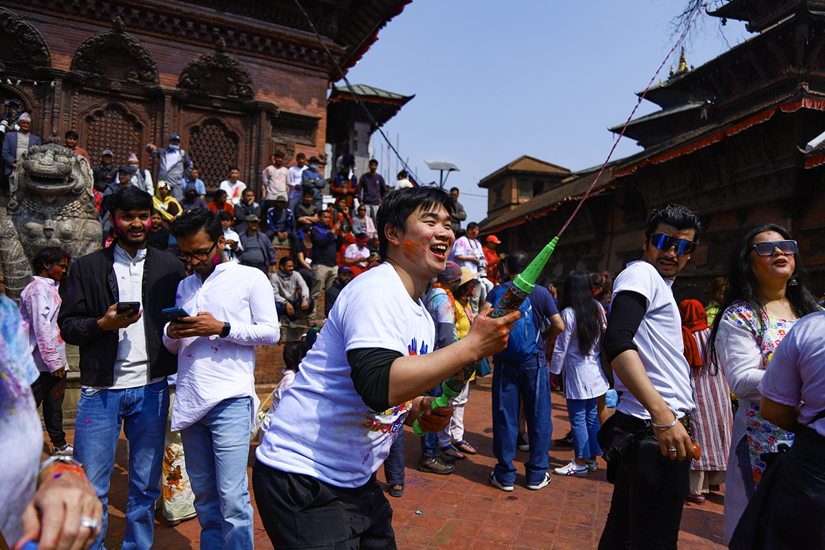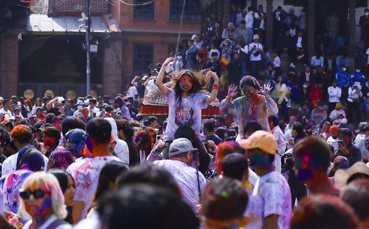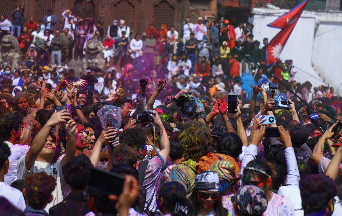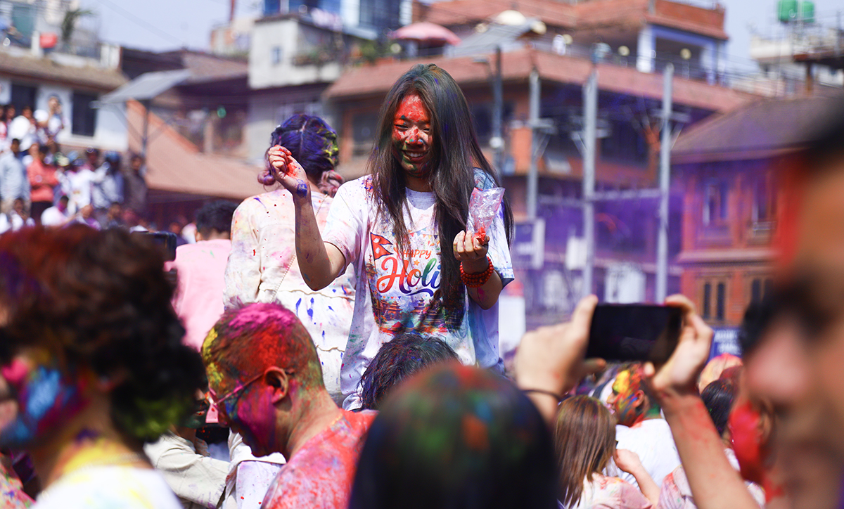 KATHMANSU: Phagu Poornima or Holi festival is being celebrated with much fanfare in the Basantapur today.